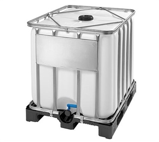 1000L IBC konteineris uz plastikāta paletes, jauns, pārtikas, ar marķējumu un sertifikatu